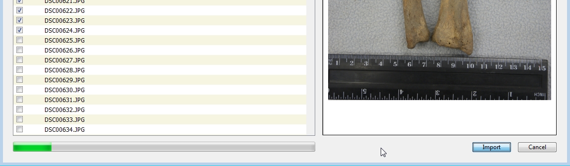 After selecting the files, the Import button starts the procedure for importing photos and adding records to the database.