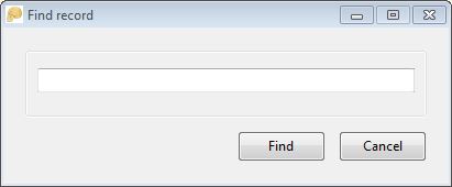 The application allows a simple search in the data table. After calling the function from the Records-> Find menu (or the keyboard shortcut CTRL + I) the search window is displayed: