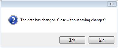 If during the editing of the record the user accidentally presses the ESC or the Cancel button program will display warning that data has been entered into the fields of the record window and will ask for confirmation that user want the data to be lost: